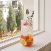 おうちカフェにピッタリなおしゃれグラスカップです。15cmと少し大きめなので、果実のゴロゴロ入ったフルーツエイドや氷の入ったアイスドリンクにおすすめです♡